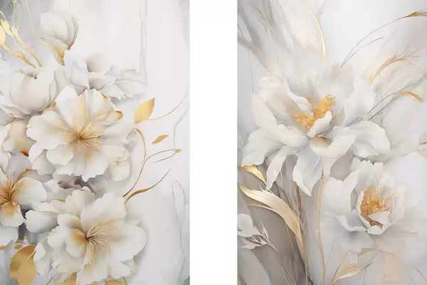 Poster Fleurs blanches avec des détails jaunes, pétales avec des ombres subtiles, fond clair avec un effet marbré subtil Nr d00889