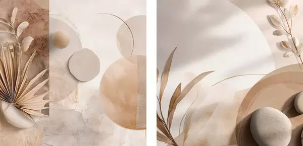 Poster Deux toiles avec des feuilles séchées et des formes texturées Nr d00893