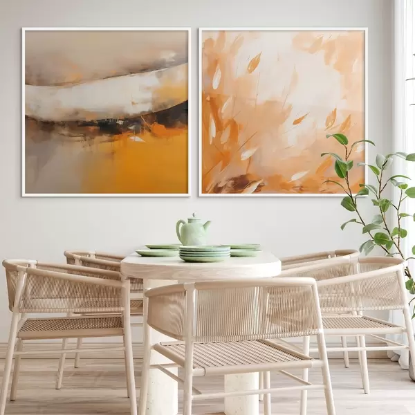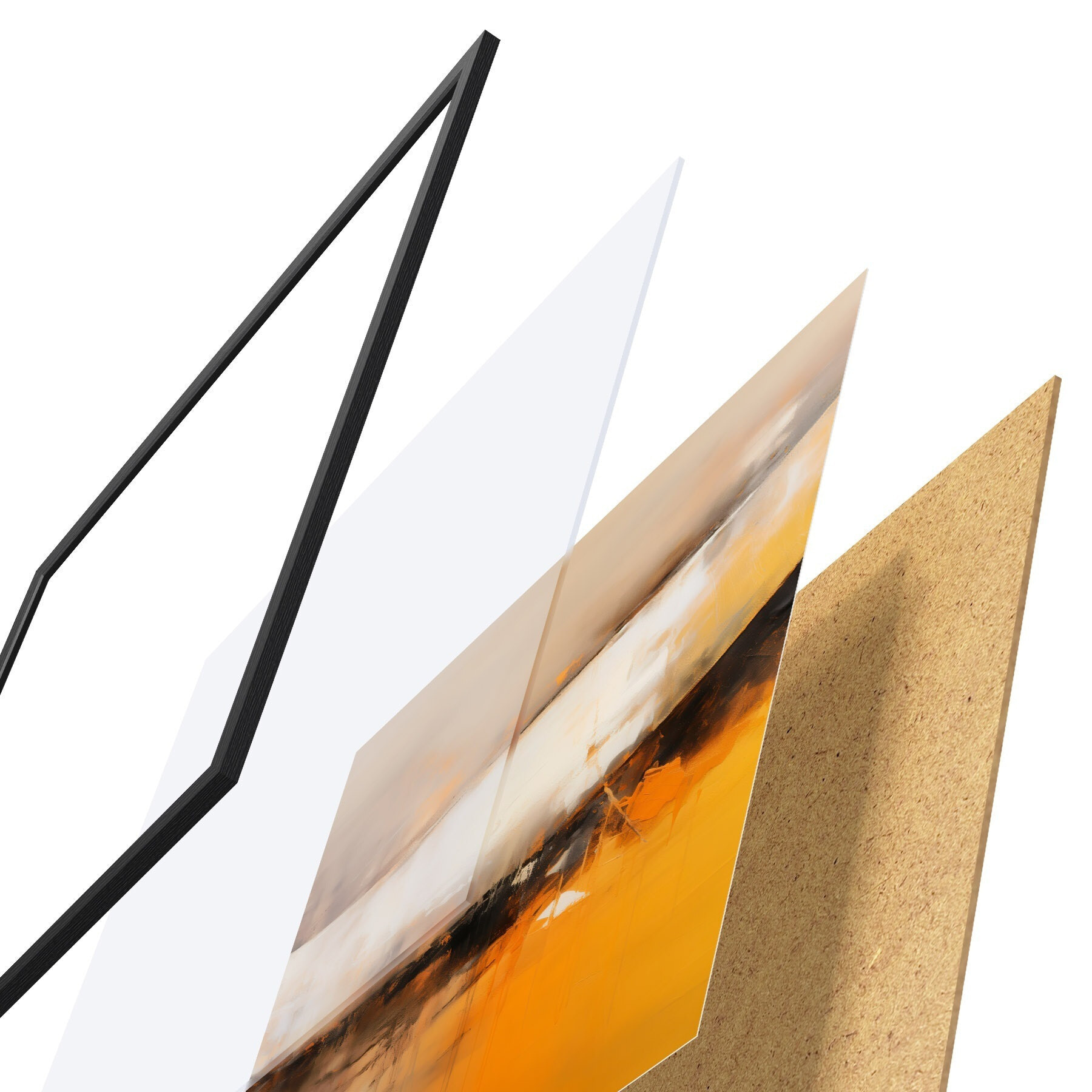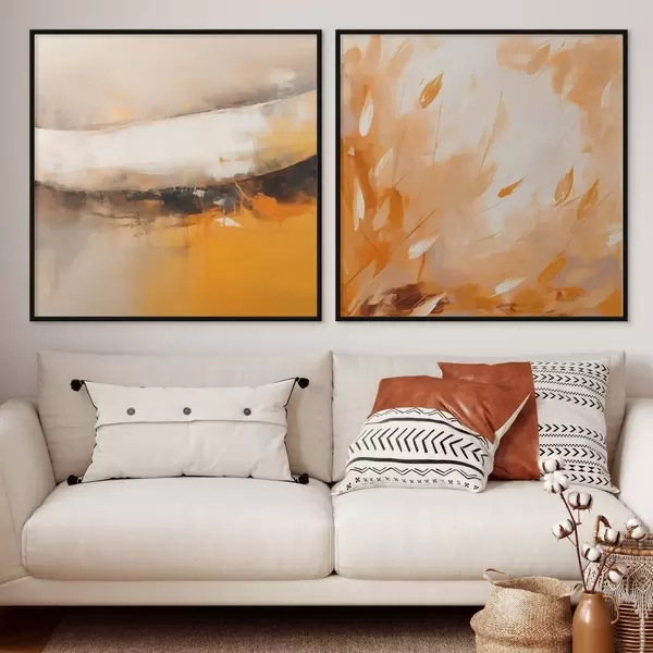 Poster Diptyque abstrait dans un style huileux avec des tons jaune-orange et noir Nr d00897
