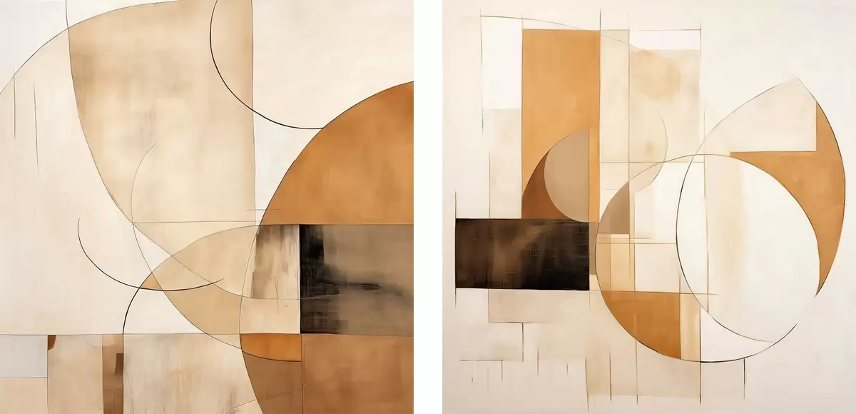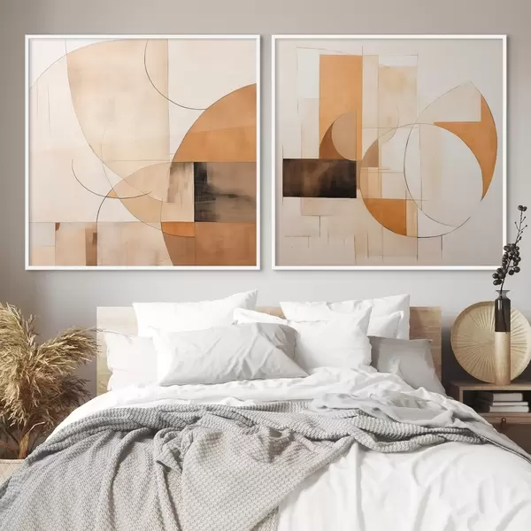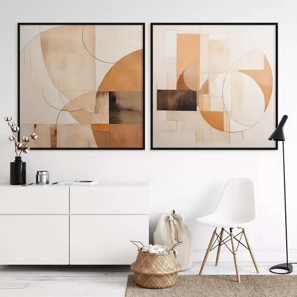 Poster Abstraction moderne avec des cercles et des lignes dans des tons café au lait Nr d00898