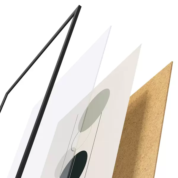 L’affiche encadrée est composée d’un cadre, d’un plexiglas, d’une image imprimée et d’un support en aggloméré. Elle est prête à être accrochée au mur grâce aux fixations situées à l’arrière.
