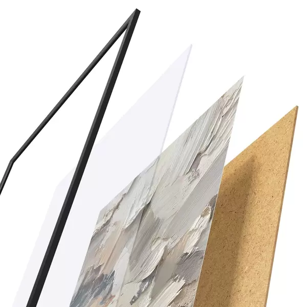 L’affiche encadrée est composée d’un cadre, d’un plexiglas, d’une image imprimée et d’un support en aggloméré. Elle est prête à être accrochée au mur grâce aux fixations situées à l’arrière.