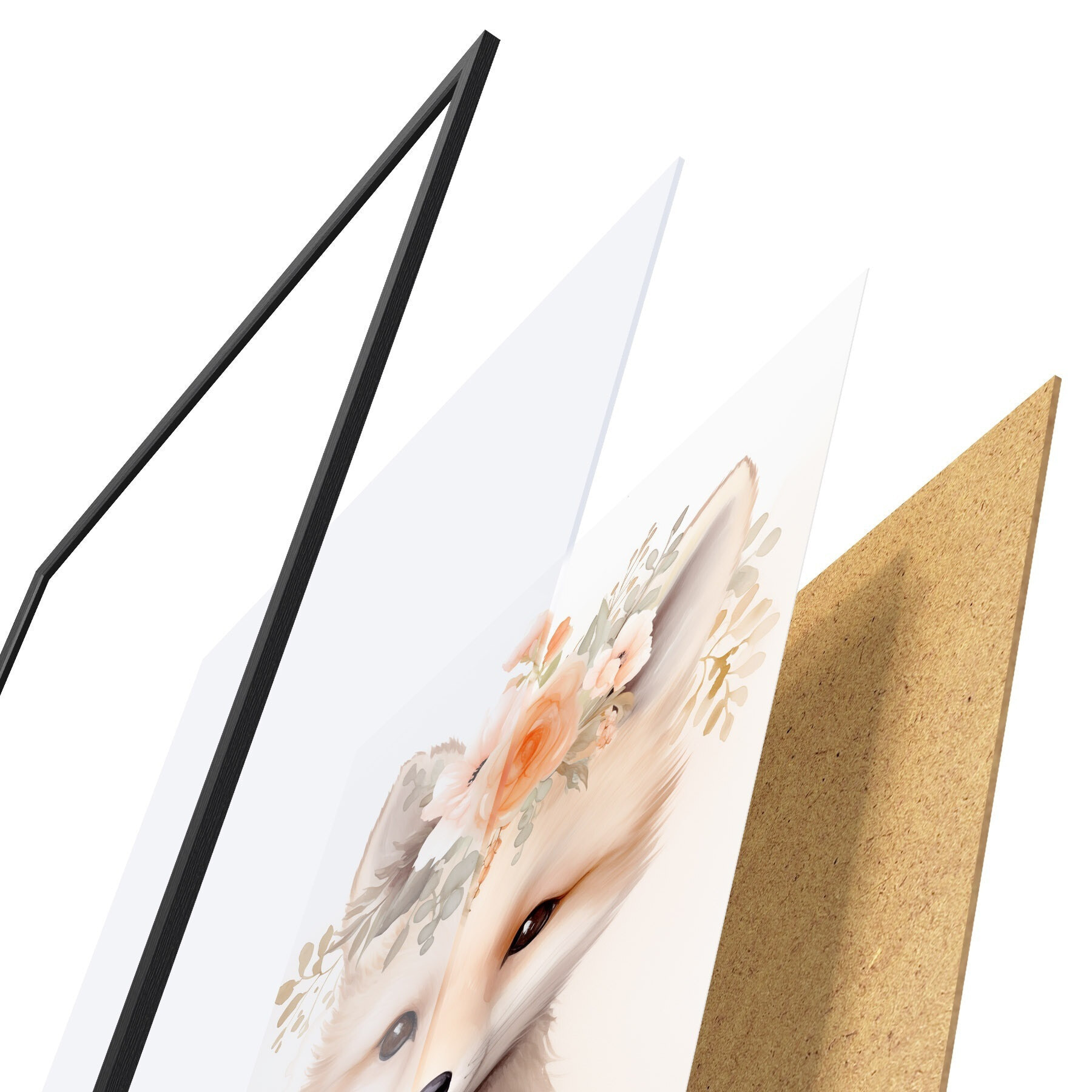 L’affiche encadrée est composée d’un cadre, d’un plexiglas, d’une image imprimée et d’un support en aggloméré. Elle est prête à être accrochée au mur grâce aux fixations situées à l’arrière.