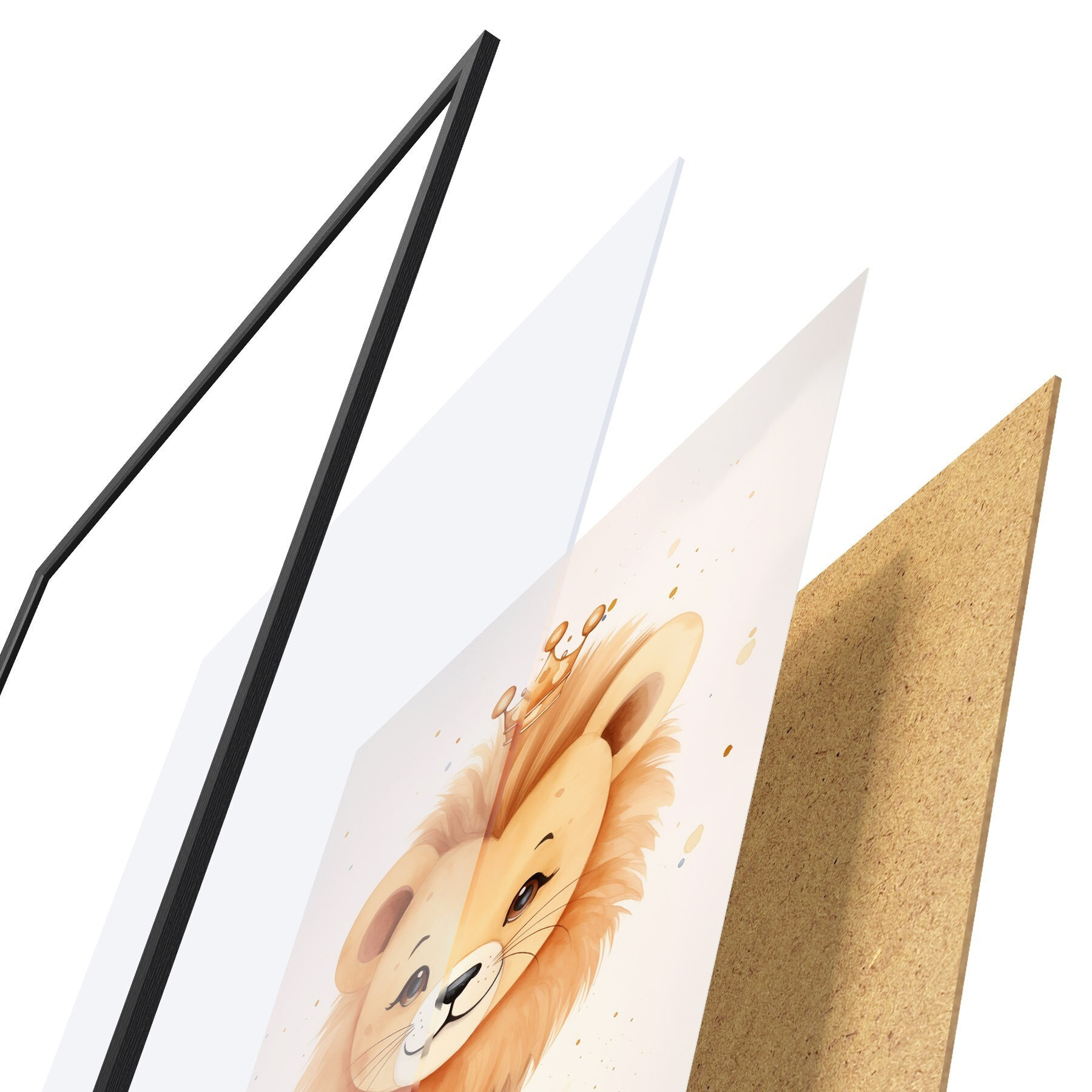 L’affiche encadrée est composée d’un cadre, d’un plexiglas, d’une image imprimée et d’un support en aggloméré. Elle est prête à être accrochée au mur grâce aux fixations situées à l’arrière.