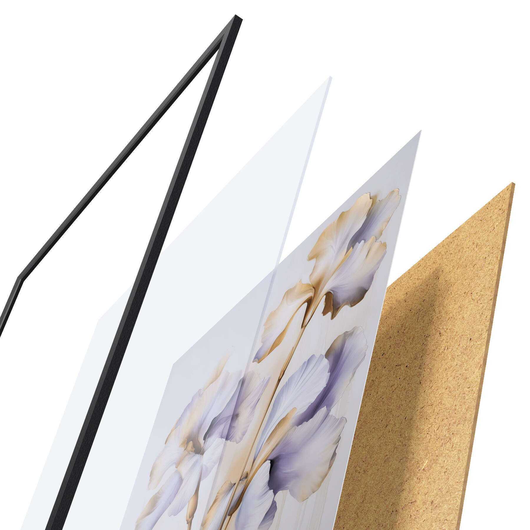 L’affiche encadrée est composée d’un cadre, d’un plexiglas, d’une image imprimée et d’un support en aggloméré. Elle est prête à être accrochée au mur grâce aux fixations situées à l’arrière.