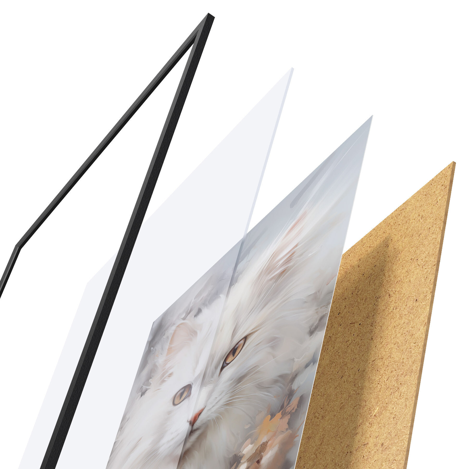 L’affiche encadrée est composée d’un cadre, d’un plexiglas, d’une image imprimée et d’un support en aggloméré. Elle est prête à être accrochée au mur grâce aux fixations situées à l’arrière.