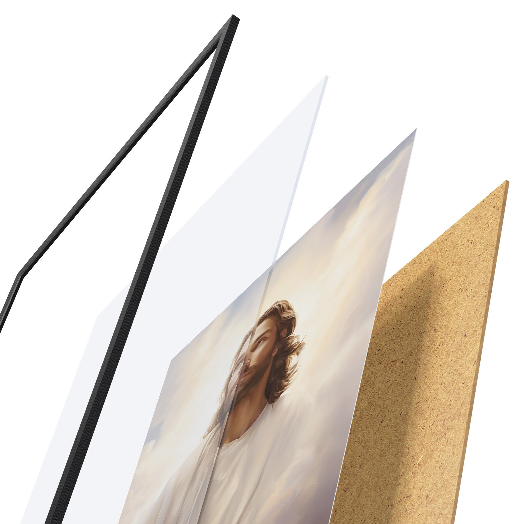 L’affiche encadrée est composée d’un cadre, d’un plexiglas, d’une image imprimée et d’un support en aggloméré. Elle est prête à être accrochée au mur grâce aux fixations situées à l’arrière.