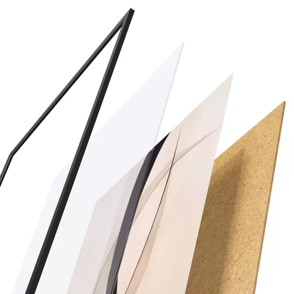 L’affiche encadrée est composée d’un cadre, d’un plexiglas, d’une image imprimée et d’un support en aggloméré. Elle est prête à être accrochée au mur grâce aux fixations situées à l’arrière.