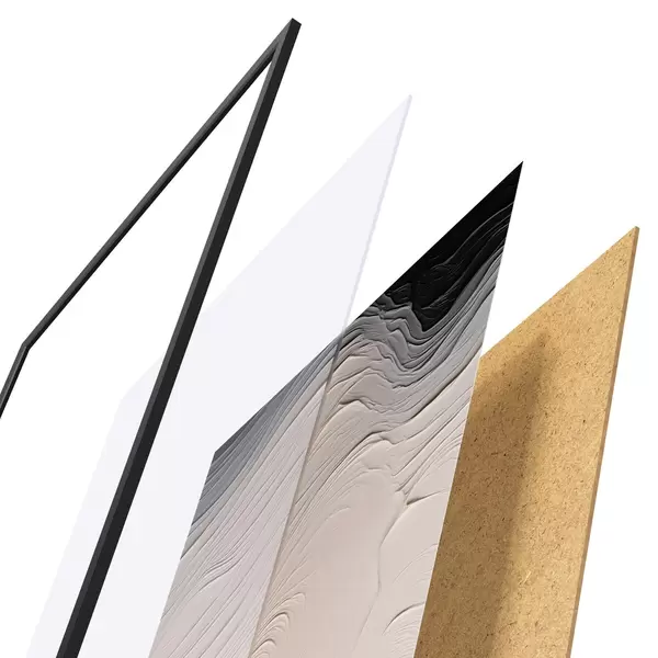 L’affiche encadrée est composée d’un cadre, d’un plexiglas, d’une image imprimée et d’un support en aggloméré. Elle est prête à être accrochée au mur grâce aux fixations situées à l’arrière.
