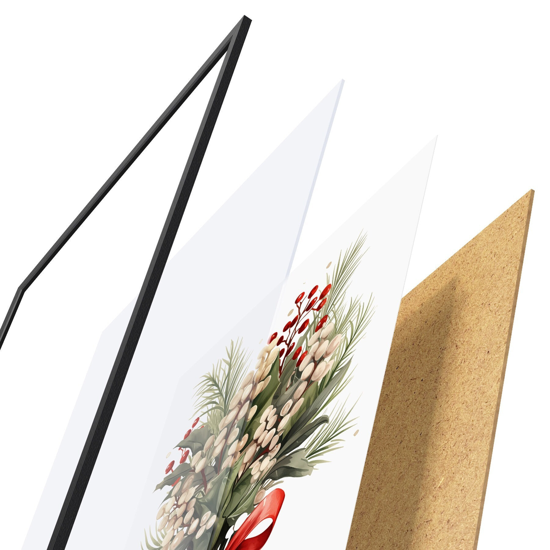 L’affiche encadrée est composée d’un cadre, d’un plexiglas, d’une image imprimée et d’un support en aggloméré. Elle est prête à être accrochée au mur grâce aux fixations situées à l’arrière.