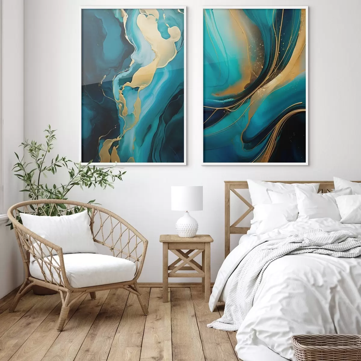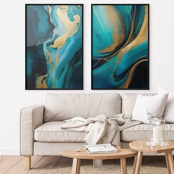 Poster Fluide bleu sarcelle abstrait avec des flux métalliques chauds Nr d00965