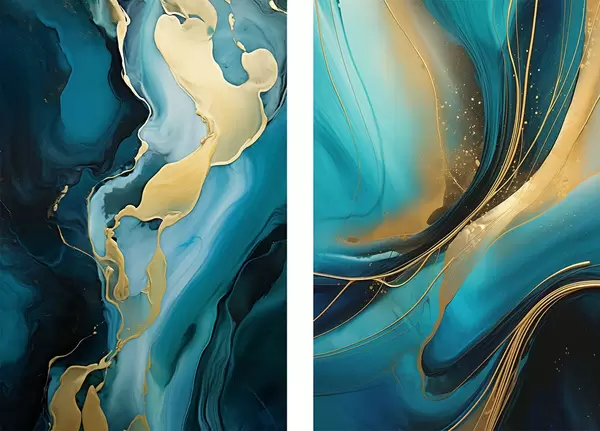 Poster Fluide bleu sarcelle abstrait avec des flux métalliques chauds Nr d00965