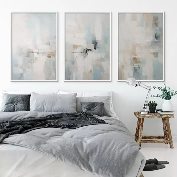 Poster Palette abstraite aérienne : blanc, beige et bleu pâle Nr d00966