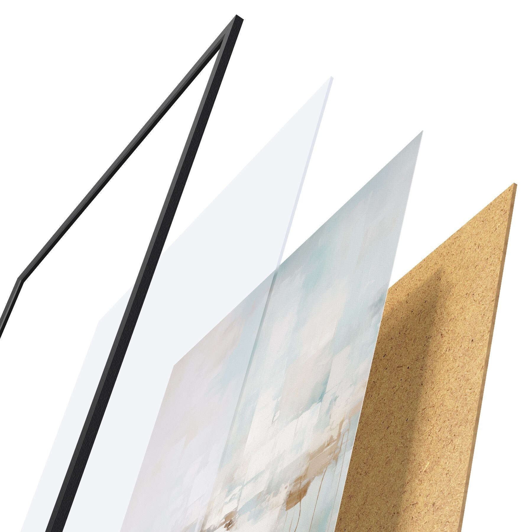 L’affiche encadrée est composée d’un cadre, d’un plexiglas, d’une image imprimée et d’un support en aggloméré. Elle est prête à être accrochée au mur grâce aux fixations situées à l’arrière.