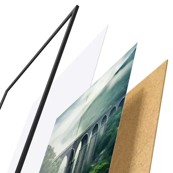 L’affiche encadrée est composée d’un cadre, d’un plexiglas, d’une image imprimée et d’un support en aggloméré. Elle est prête à être accrochée au mur grâce aux fixations situées à l’arrière.