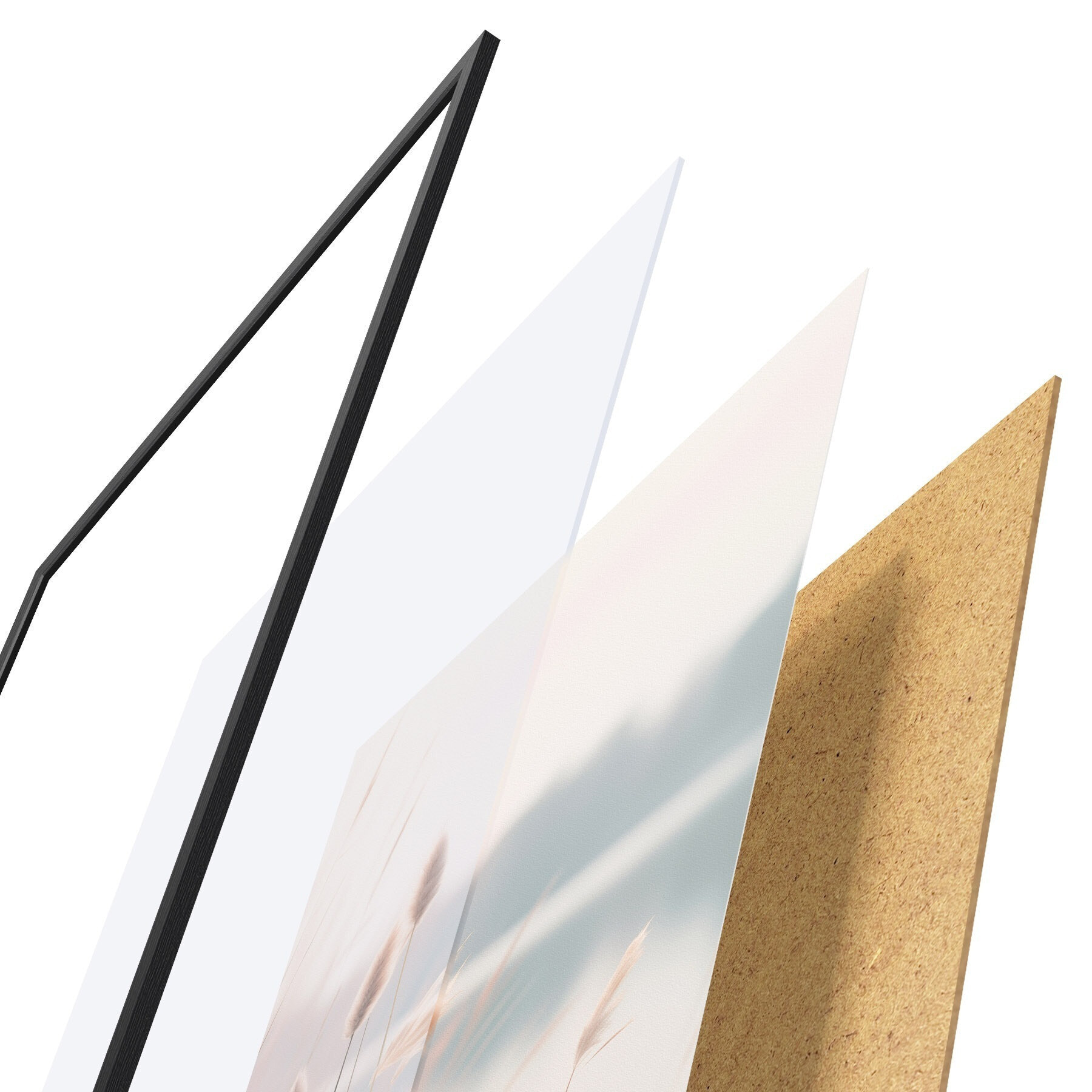 L’affiche encadrée est composée d’un cadre, d’un plexiglas, d’une image imprimée et d’un support en aggloméré. Elle est prête à être accrochée au mur grâce aux fixations situées à l’arrière.