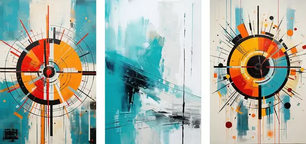Poster Abstrait radial avec éclats bleu sarcelle et orange Nr d00973