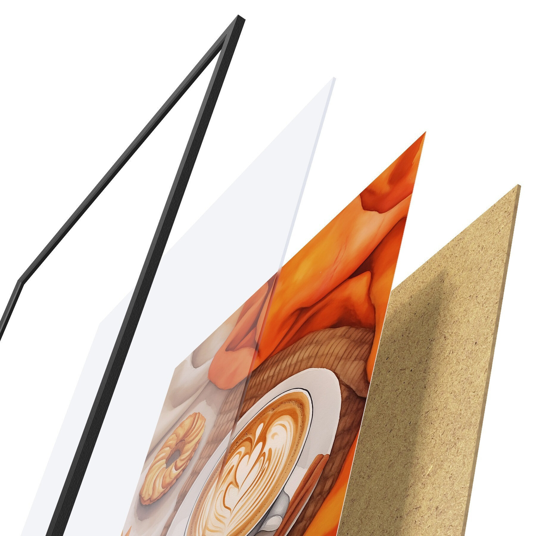 L’affiche encadrée est composée d’un cadre, d’un plexiglas, d’une image imprimée et d’un support en aggloméré. Elle est prête à être accrochée au mur grâce aux fixations situées à l’arrière.