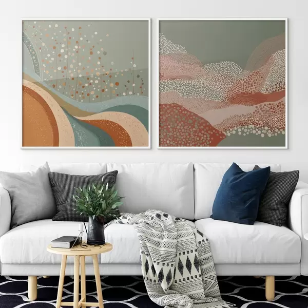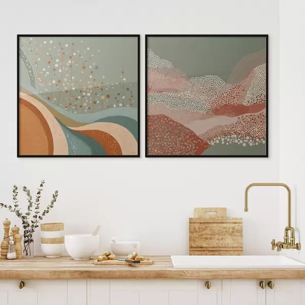 Poster Paysage abstrait en deux parties avec des éléments en pointillés et ondulés Nr d00987