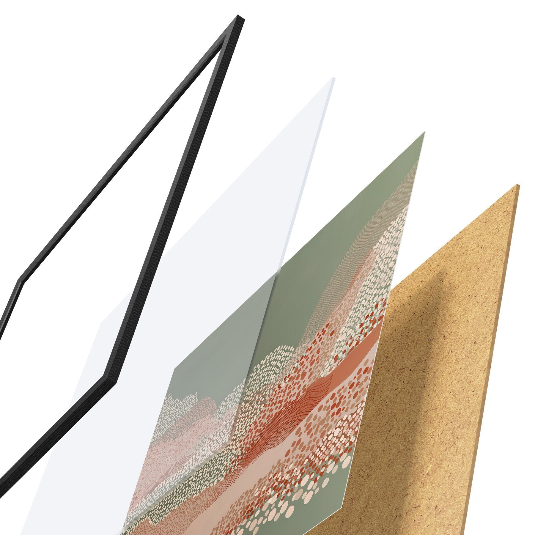 L’affiche encadrée est composée d’un cadre, d’un plexiglas, d’une image imprimée et d’un support en aggloméré. Elle est prête à être accrochée au mur grâce aux fixations situées à l’arrière.