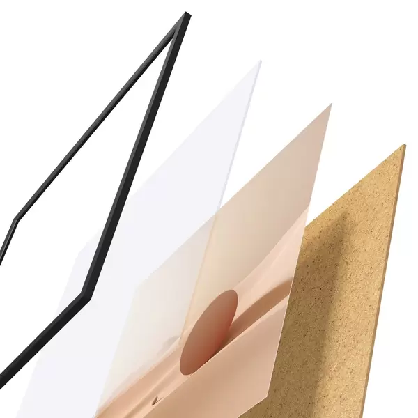 L’affiche encadrée est composée d’un cadre, d’un plexiglas, d’une image imprimée et d’un support en aggloméré. Elle est prête à être accrochée au mur grâce aux fixations situées à l’arrière.