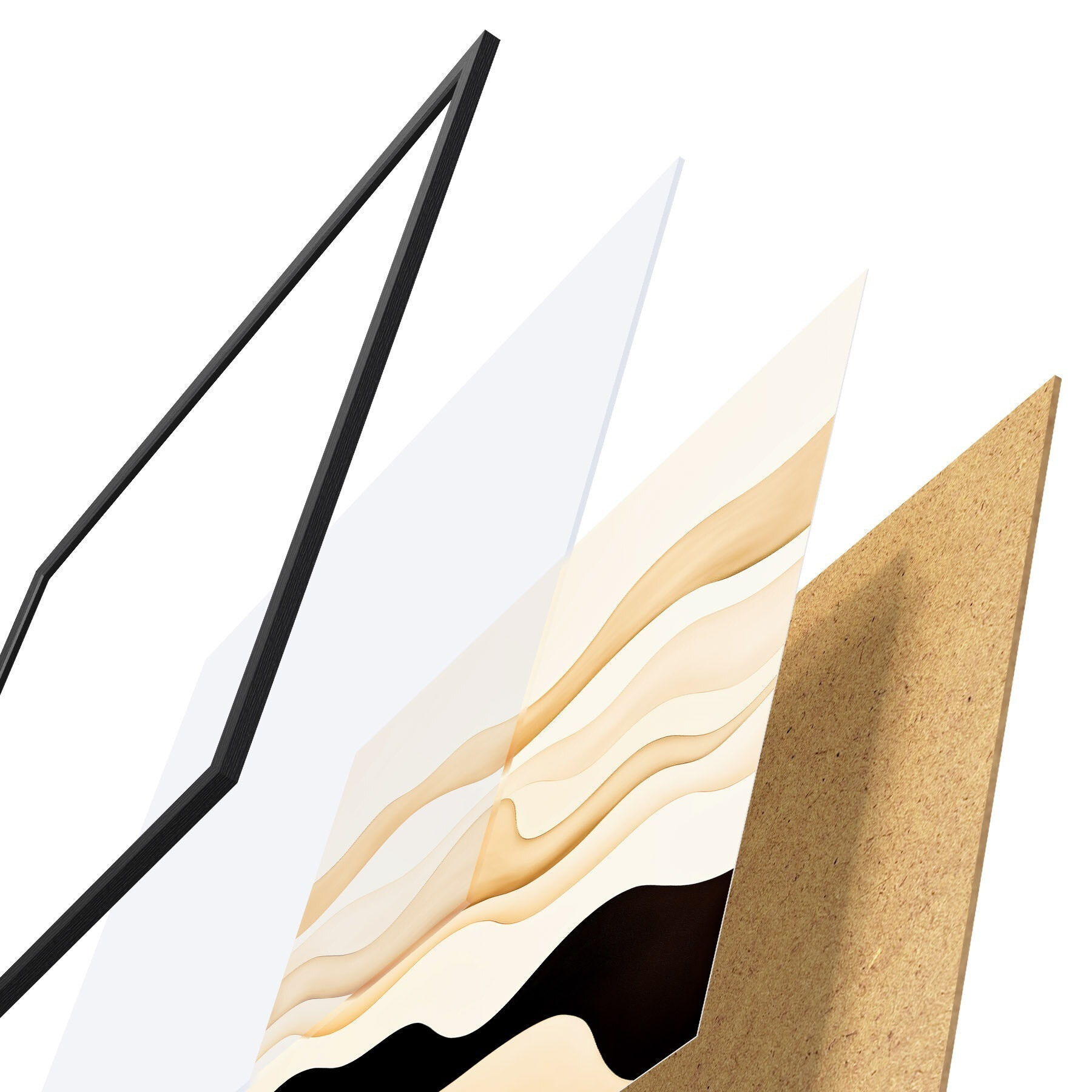 L’affiche encadrée est composée d’un cadre, d’un plexiglas, d’une image imprimée et d’un support en aggloméré. Elle est prête à être accrochée au mur grâce aux fixations situées à l’arrière.