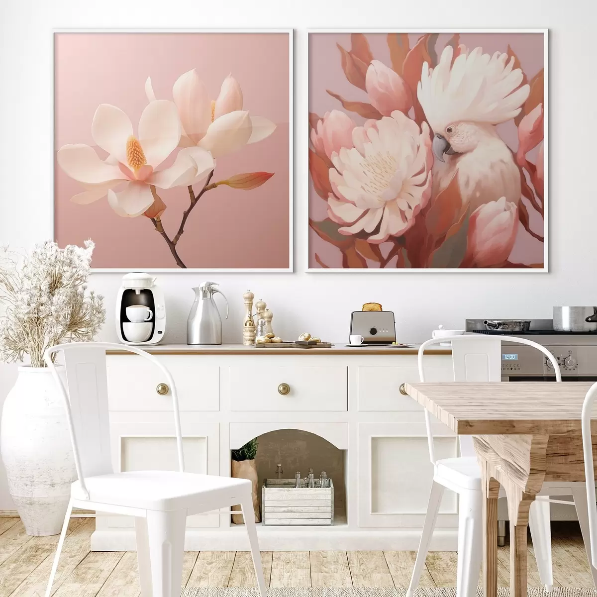 Poster Composition florale avec un oiseau dans un style artistique illustré Nr d00994