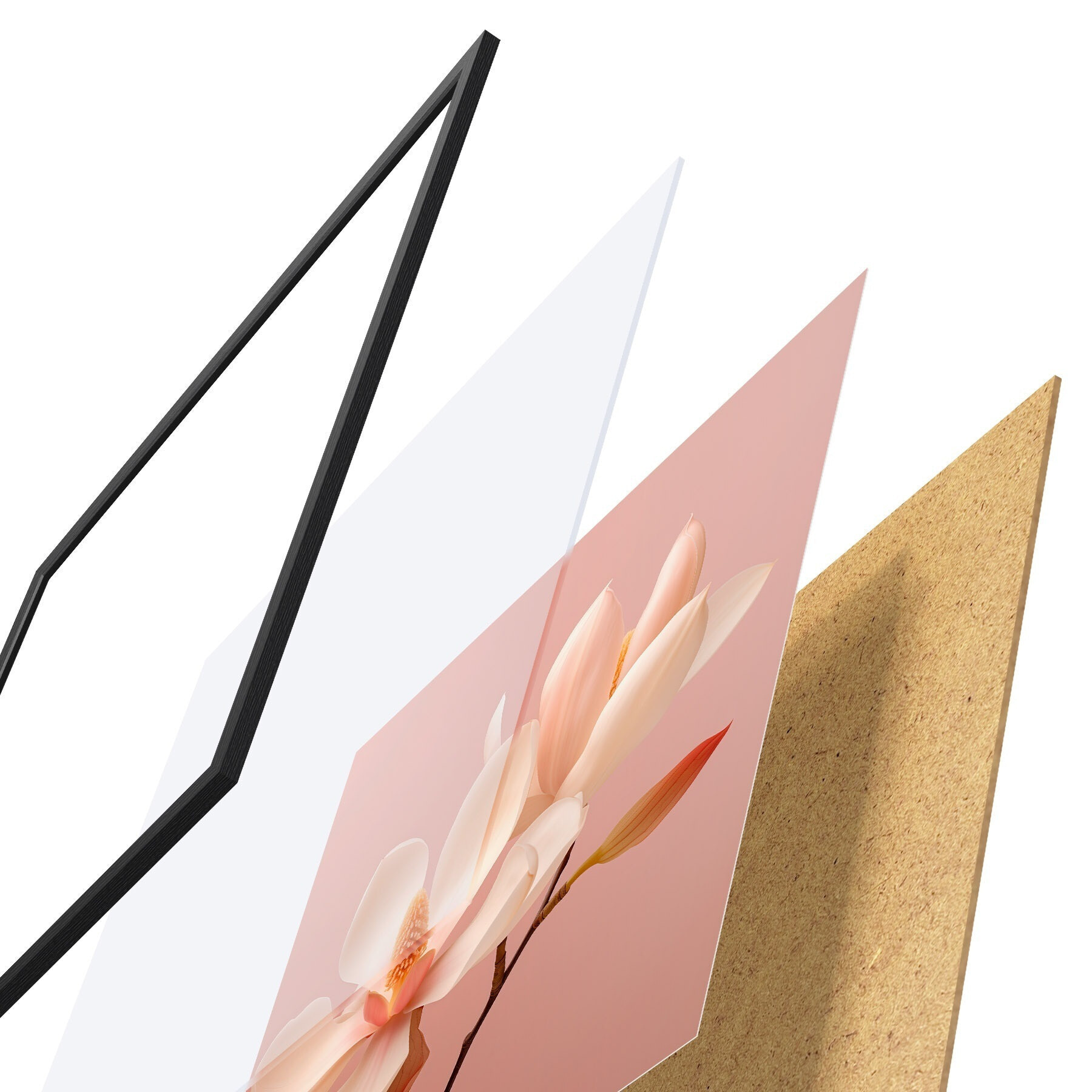 L’affiche encadrée est composée d’un cadre, d’un plexiglas, d’une image imprimée et d’un support en aggloméré. Elle est prête à être accrochée au mur grâce aux fixations situées à l’arrière.