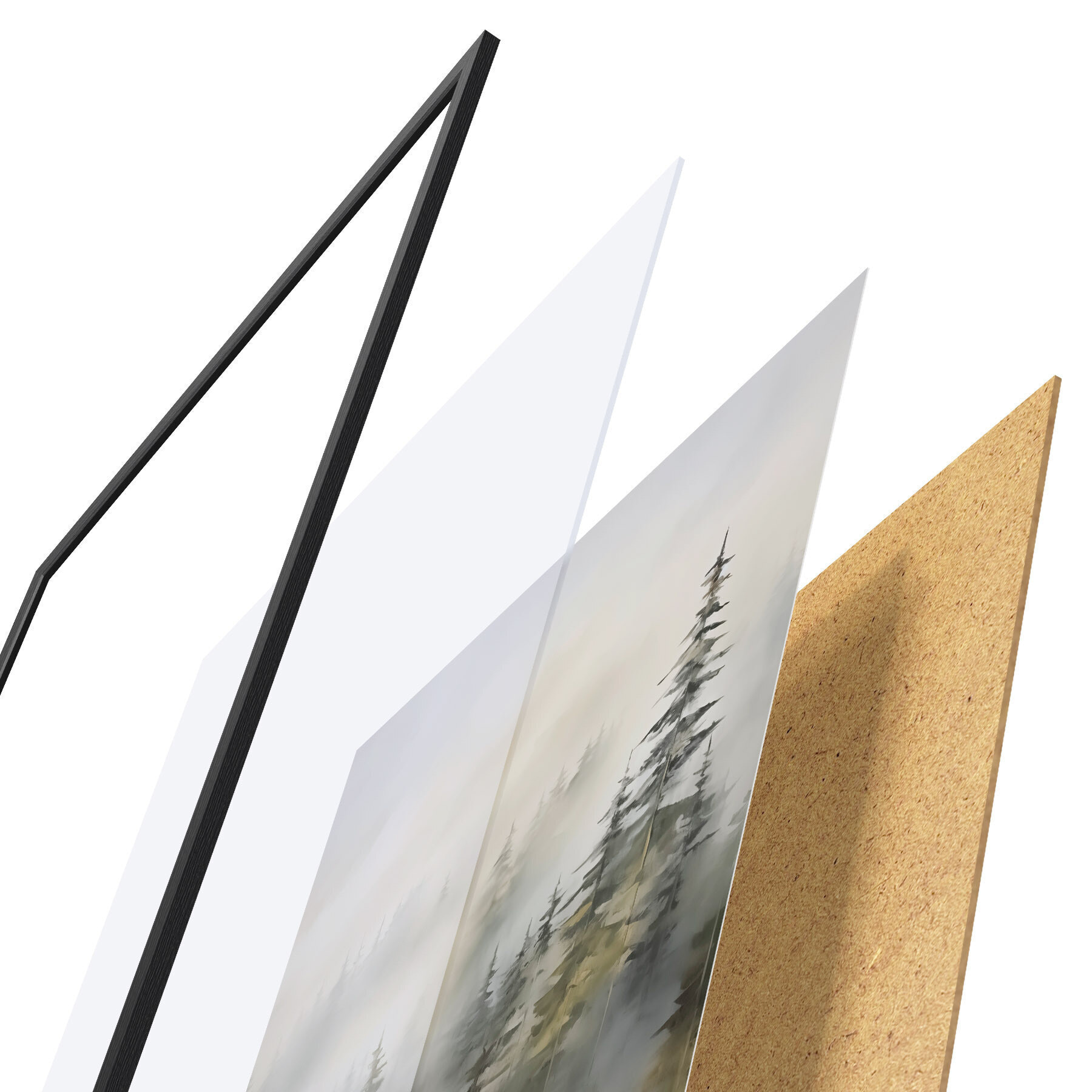 L’affiche encadrée est composée d’un cadre, d’un plexiglas, d’une image imprimée et d’un support en aggloméré. Elle est prête à être accrochée au mur grâce aux fixations situées à l’arrière.