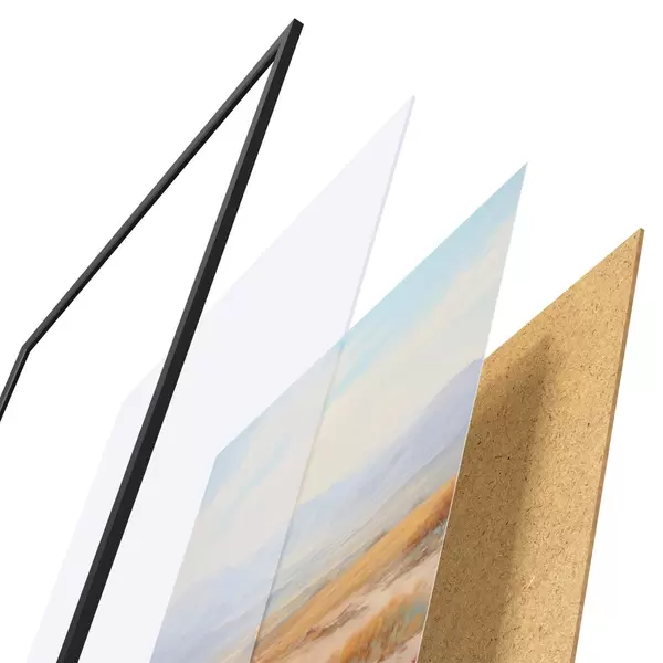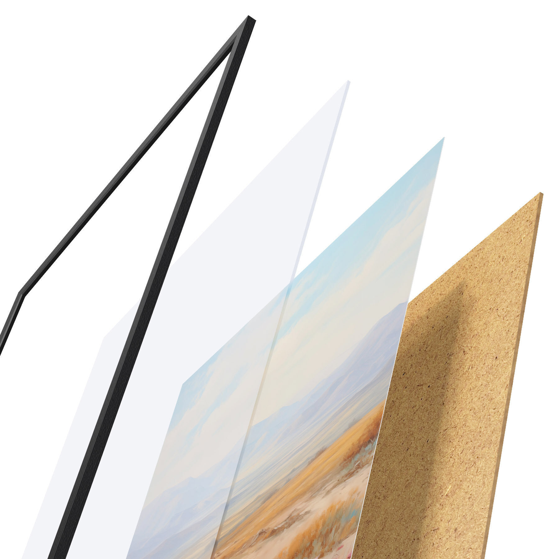 L’affiche encadrée est composée d’un cadre, d’un plexiglas, d’une image imprimée et d’un support en aggloméré. Elle est prête à être accrochée au mur grâce aux fixations situées à l’arrière.