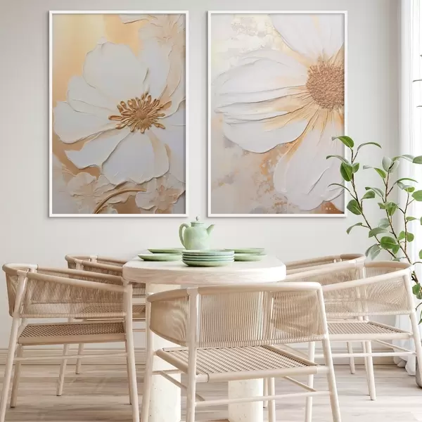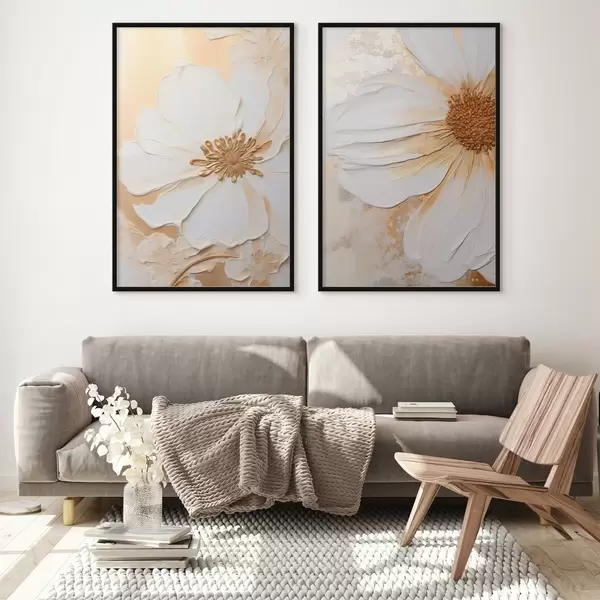 Poster Une fleur blanche aux pétales délicats, fond abstrait texturé, élégant, art décoratif d01006