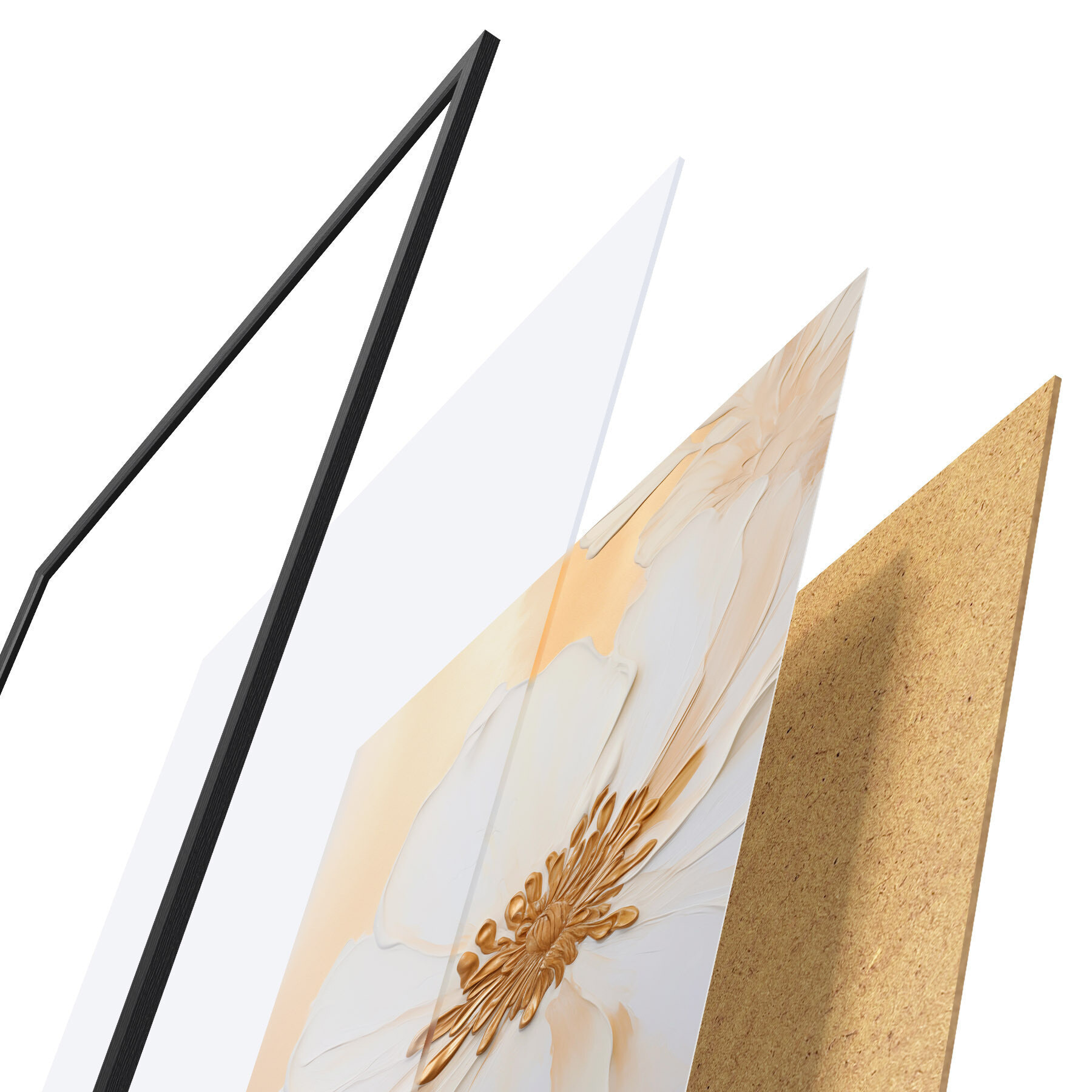 L’affiche encadrée est composée d’un cadre, d’un plexiglas, d’une image imprimée et d’un support en aggloméré. Elle est prête à être accrochée au mur grâce aux fixations situées à l’arrière.