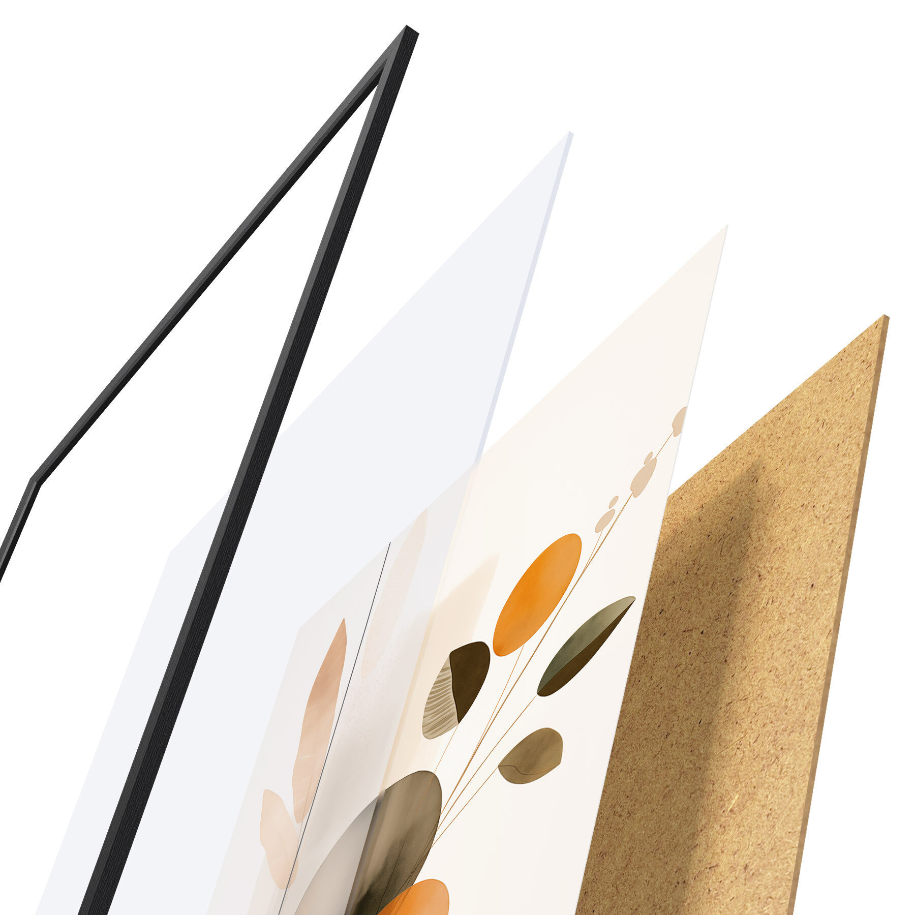 L’affiche encadrée est composée d’un cadre, d’un plexiglas, d’une image imprimée et d’un support en aggloméré. Elle est prête à être accrochée au mur grâce aux fixations situées à l’arrière.
