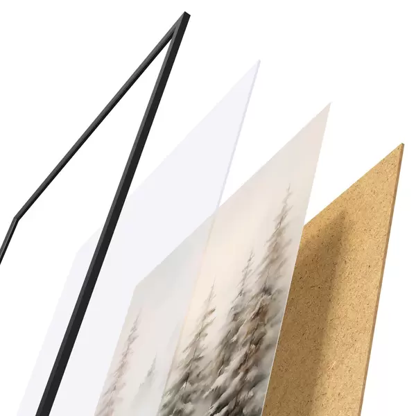 L’affiche encadrée est composée d’un cadre, d’un plexiglas, d’une image imprimée et d’un support en aggloméré. Elle est prête à être accrochée au mur grâce aux fixations situées à l’arrière.
