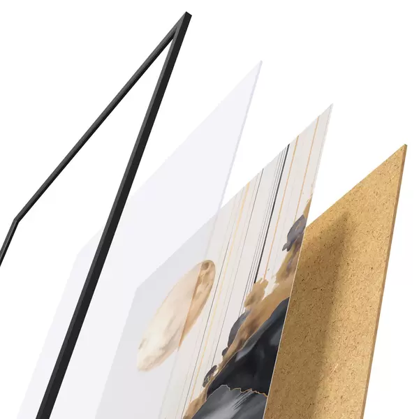 L’affiche encadrée est composée d’un cadre, d’un plexiglas, d’une image imprimée et d’un support en aggloméré. Elle est prête à être accrochée au mur grâce aux fixations situées à l’arrière.