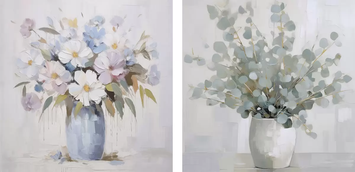 Poster Peinture imitation fleurs et eucalyptus Nr d01017