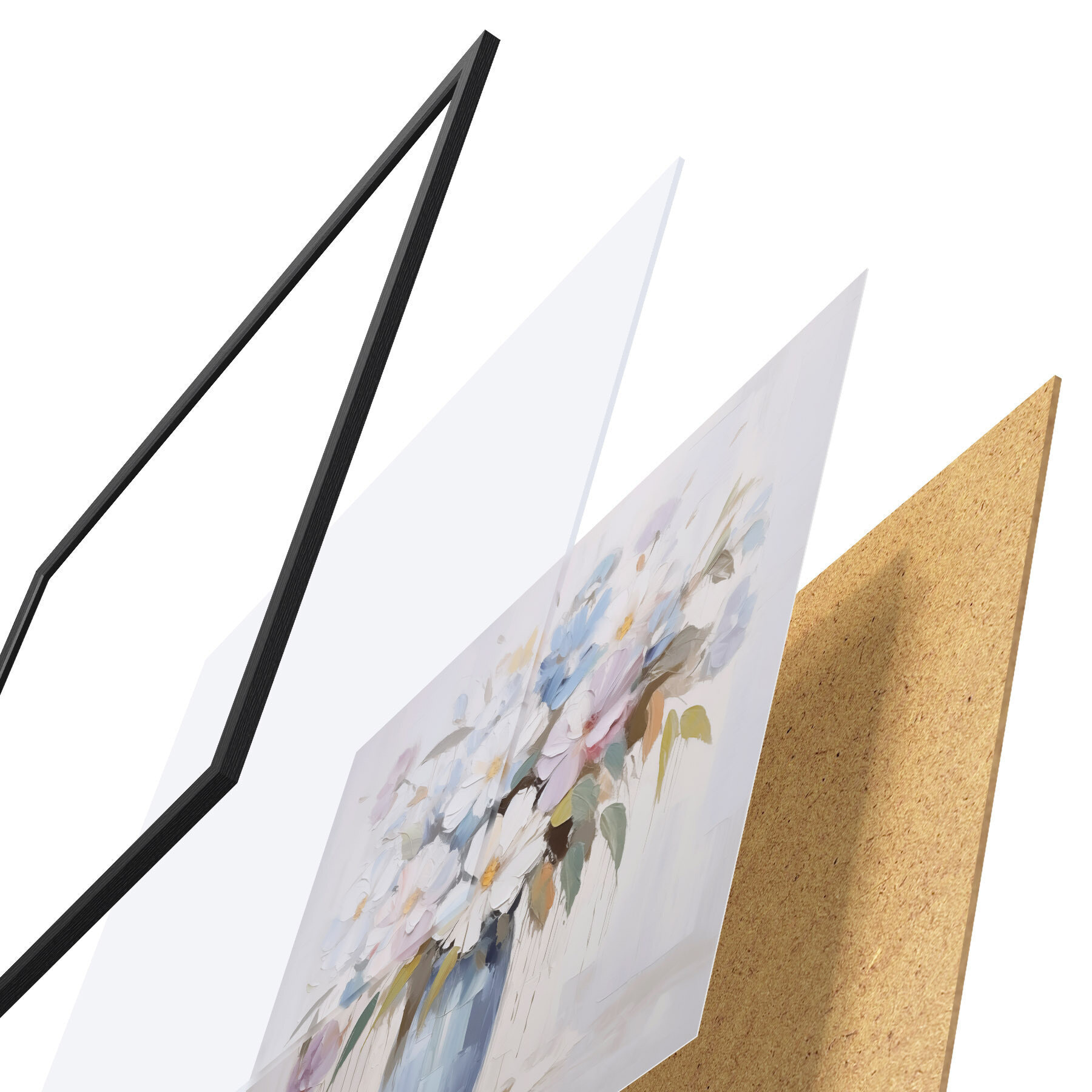 L’affiche encadrée est composée d’un cadre, d’un plexiglas, d’une image imprimée et d’un support en aggloméré. Elle est prête à être accrochée au mur grâce aux fixations situées à l’arrière.