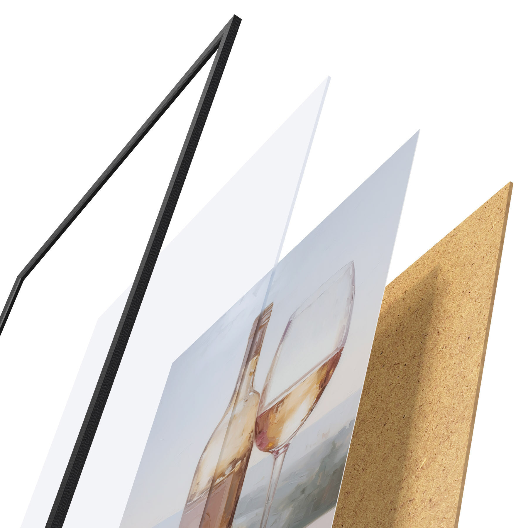 L’affiche encadrée est composée d’un cadre, d’un plexiglas, d’une image imprimée et d’un support en aggloméré. Elle est prête à être accrochée au mur grâce aux fixations situées à l’arrière.