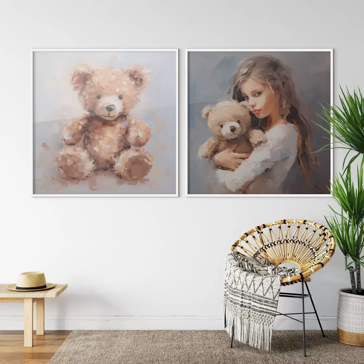 Poster Fille avec un ours en peluche, imitation de peinture Nr d01029