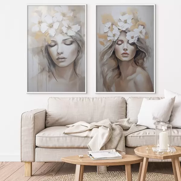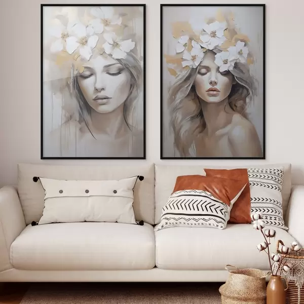 Poster Portrait abstrait d'une jeune fille avec des fleurs, imitation d'une peinture Nr d01034
