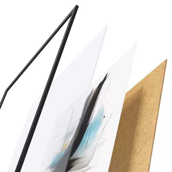 L’affiche encadrée est composée d’un cadre, d’un plexiglas, d’une image imprimée et d’un support en aggloméré. Elle est prête à être accrochée au mur grâce aux fixations situées à l’arrière.