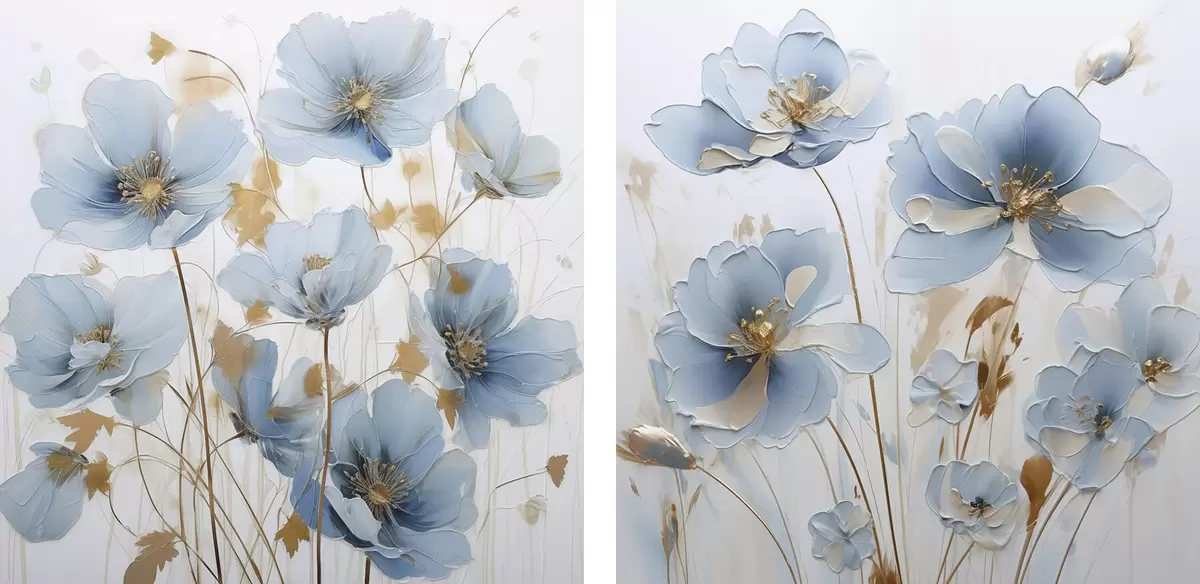 Trois types de matériaux peuvent être commandés : Economic Canvas - matériau dense et durable pour l'impression numérique, identique à la toile de peintre, surface imperméable, reproduction réaliste des détails, matériau à grain moyen. Premium Canvas - la texture ressemble à celle d'une toile de peintre (petits fils entrelacés). Reproduction douce et détaillée de l'image sur une surface mate. Eco-Premium - tissu 100 % coton de haute qualité. Grâce aux fibres naturelles de coton, le matériau est durable et résistant à l'usure. Excellente reproduction des couleurs et des détails.