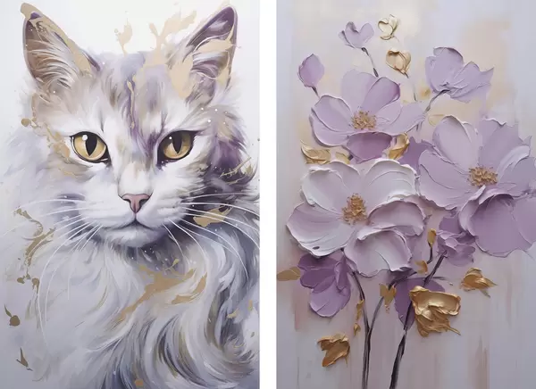 Poster Fleurs abstraites et un chat Nr d01056