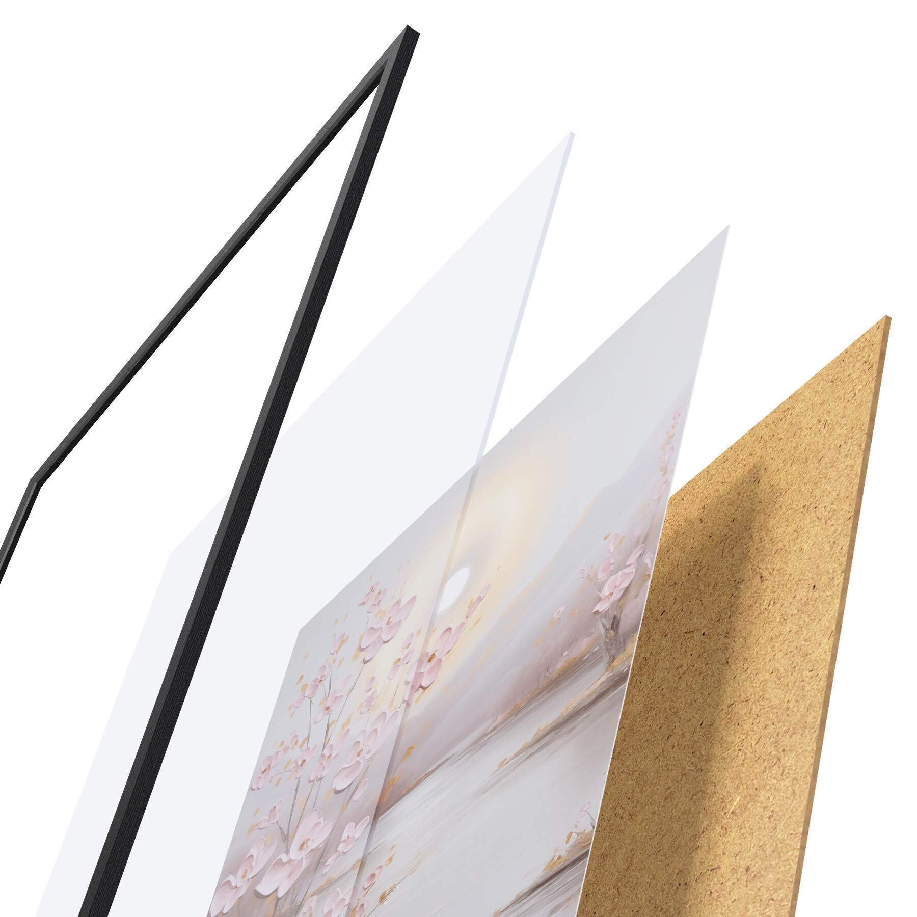 L’affiche encadrée est composée d’un cadre, d’un plexiglas, d’une image imprimée et d’un support en aggloméré. Elle est prête à être accrochée au mur grâce aux fixations situées à l’arrière.