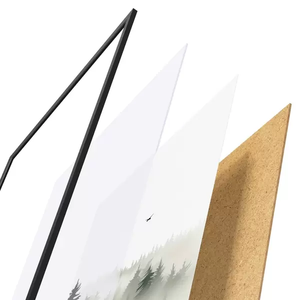 L’affiche encadrée est composée d’un cadre, d’un plexiglas, d’une image imprimée et d’un support en aggloméré. Elle est prête à être accrochée au mur grâce aux fixations situées à l’arrière.