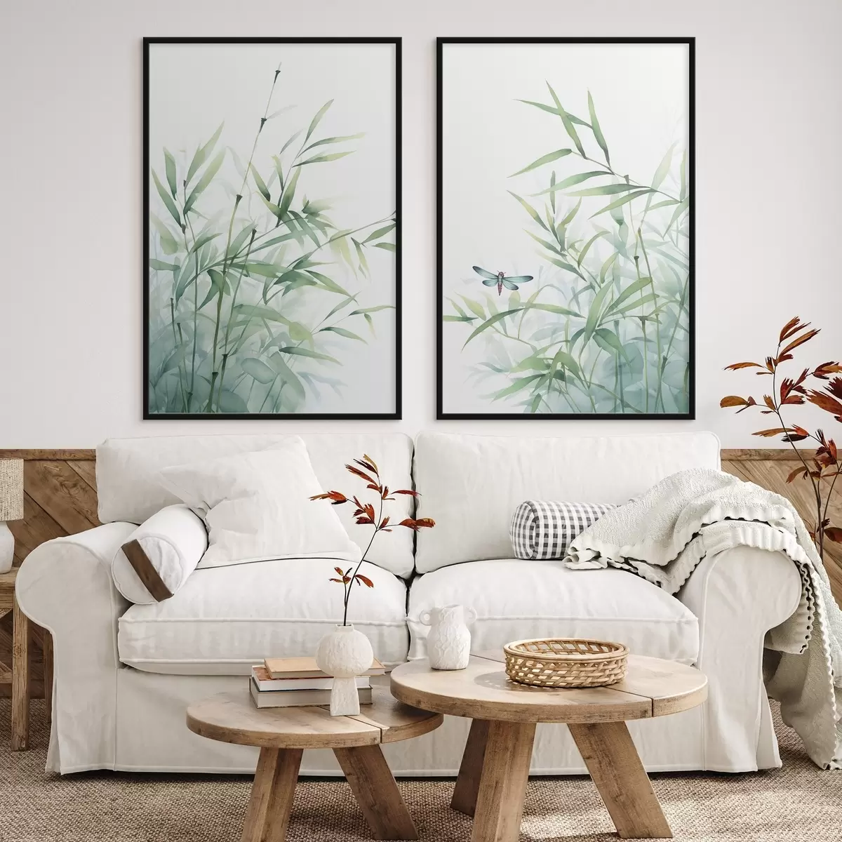 Poster Plantes de bambou, imitation aquarelle Nr d01062
