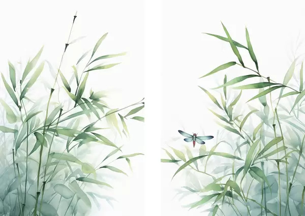 Poster Plantes de bambou, imitation aquarelle Nr d01062