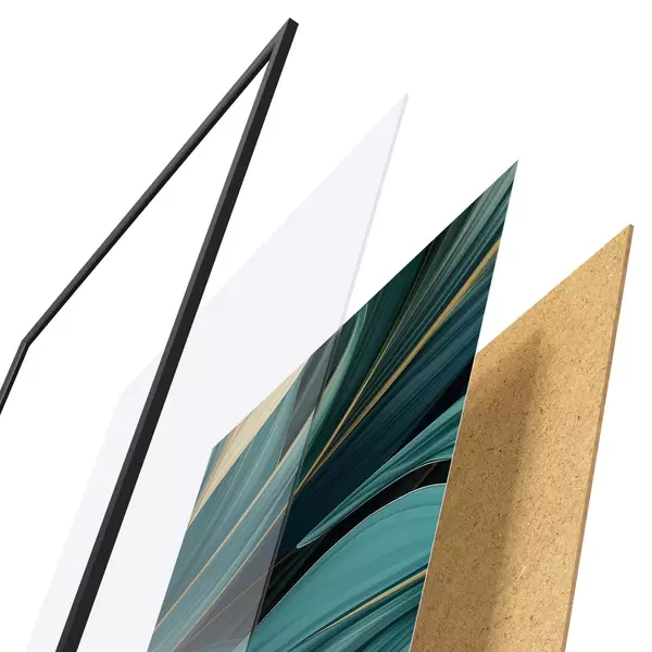 L’affiche encadrée est composée d’un cadre, d’un plexiglas, d’une image imprimée et d’un support en aggloméré. Elle est prête à être accrochée au mur grâce aux fixations situées à l’arrière.