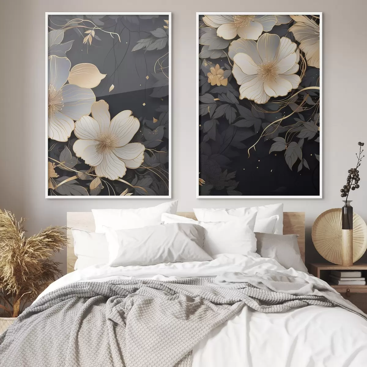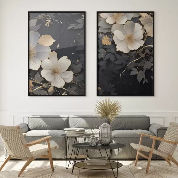 Poster Grandes fleurs abstraites sur fond sombre d01066