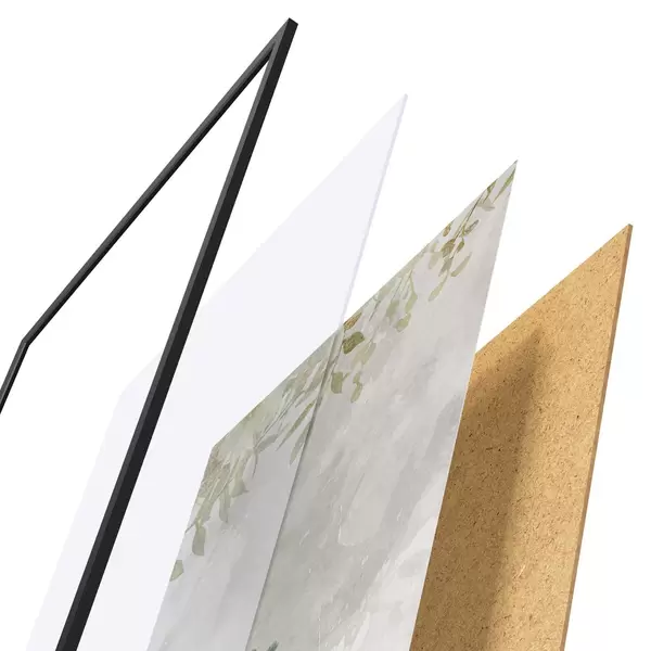 L’affiche encadrée est composée d’un cadre, d’un plexiglas, d’une image imprimée et d’un support en aggloméré. Elle est prête à être accrochée au mur grâce aux fixations situées à l’arrière.